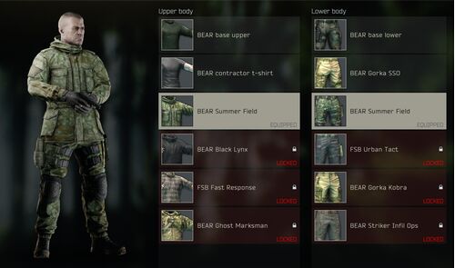ようやく Lv15 になった... Lv15 & Ragman LL2 で Bear Summer Field suits を着れるようになる。 BEAR Summer Field なかなかかっけえ、PACA も似合う。ボディアーマーと、ゆったりした服のラインががっちり感を演出している。エイム中の腕もいい。 かっこ…